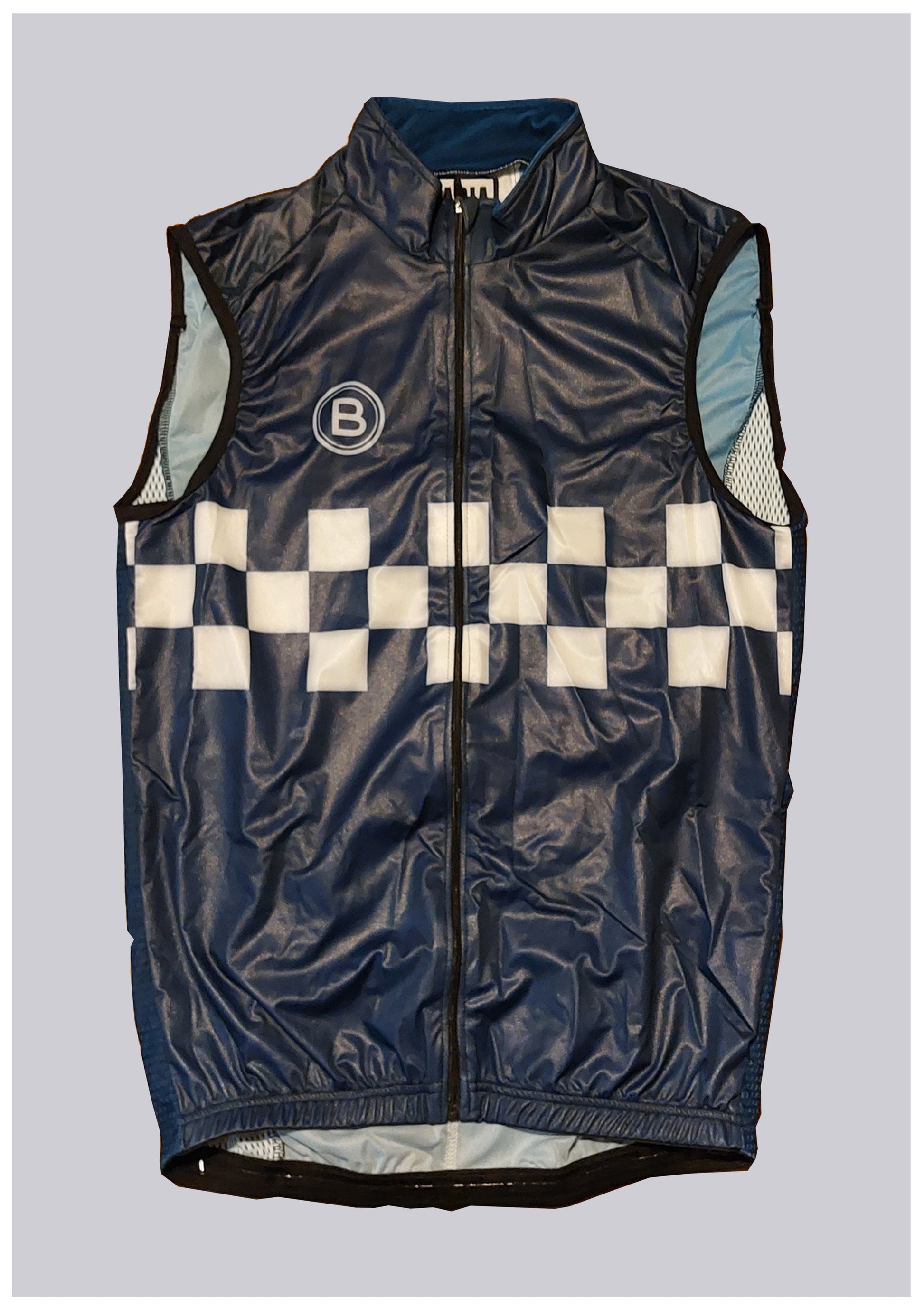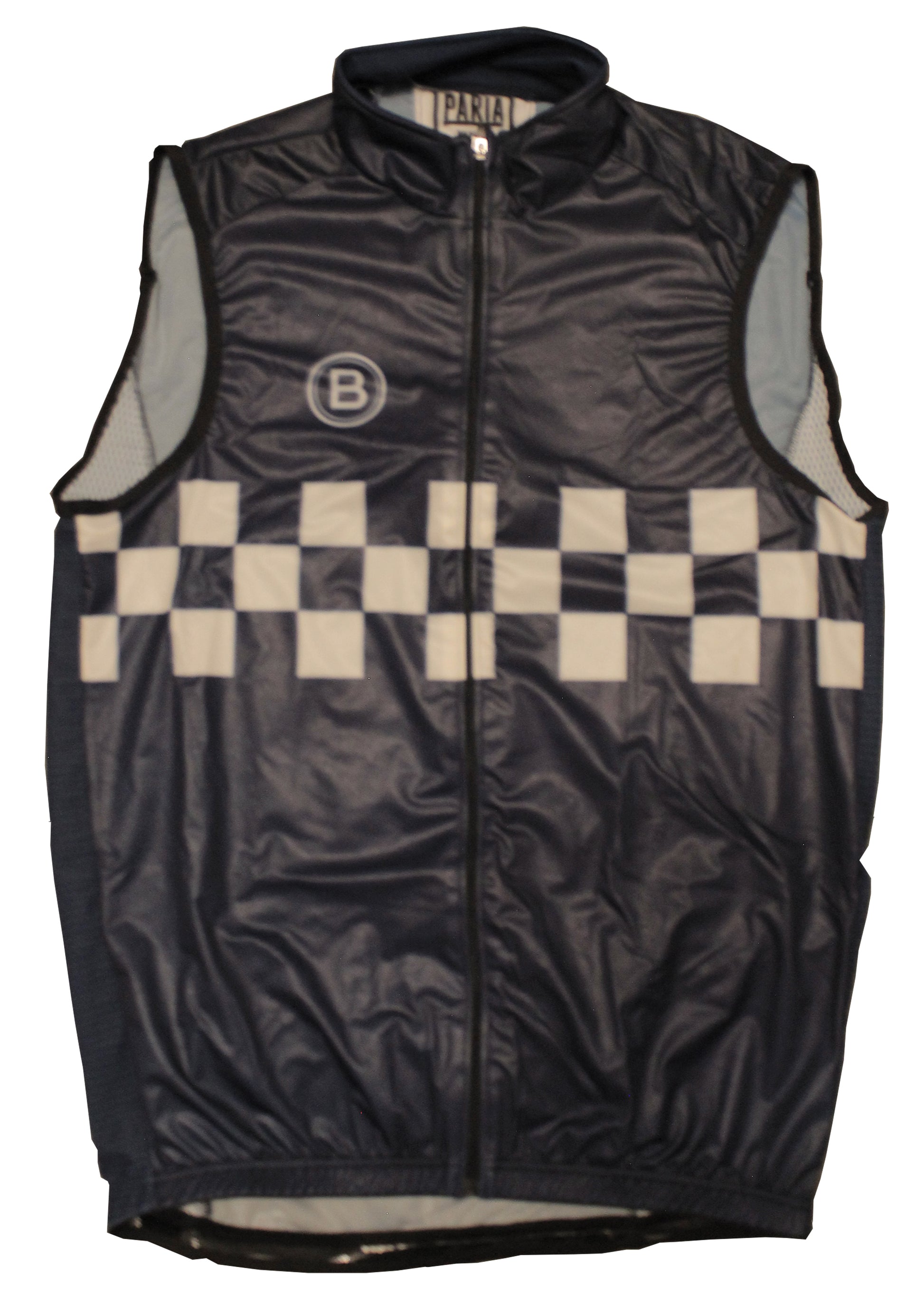 The front of the cycling vest has windproof fabric with a full zipper.